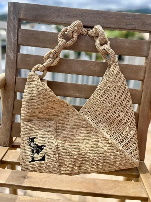 Adoptez ce sac à main en raphia fait main pour un style affirmé qui célèbre l’artisanat et la beauté des matières naturelles.